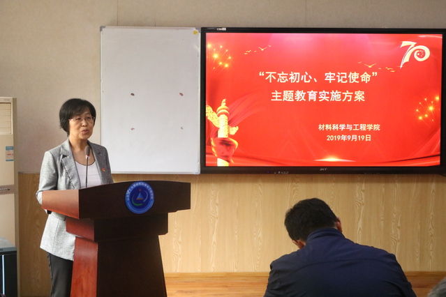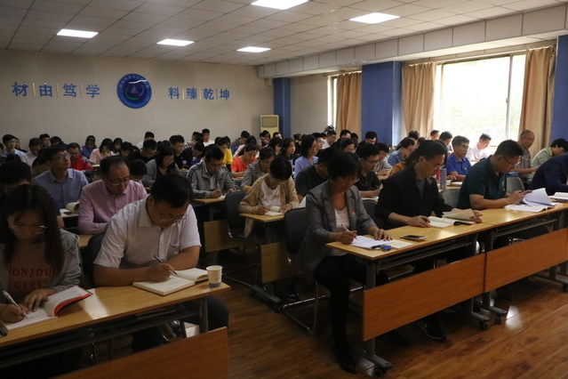 9月19日下午,材料公司在13号教学楼130室召开“不忘初心、牢记使命”主题教育工作会议,部署启动公司主题教育。公司党委主题教育督导组高存福同志到会指导。公司班子成员和全体师生党员佩戴党徽参加了会议。