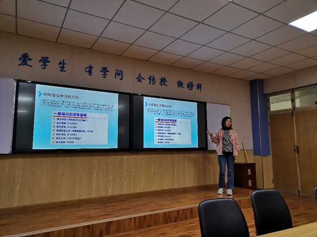 第一阶段由近三年获得国家自然科学基金的四位青年教师李晓伟、曹俊、崔晓丽、孙海滨就基金申报成功经验进行交流。他们从基金申报的准备,到选题确定方向,再到申报书各部分内容的撰写等全面介绍了个人在基金申报过程中遇到的问题、解决的办法和心得体会。旨在帮助青年教师写好申报书,争取在明年的国家青年基金申报中取得突破,同时也为各级各类项目的申报做好准备。