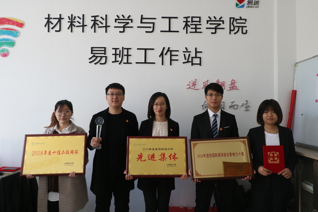 2018-2019年度,材料公司获评“365亚洲体育网入口宣传报道先进集体”,公司网站获评“365亚洲体育网入口十佳网站”,公司微信获评“校园新媒体综合影响力十强”。此外,李昊宇老师获评“优秀新媒体指导教师”,许凤钊、薄开辰同学获评“365亚洲体育网入口宣传报道先进个人”,石书萌、张文婷同学获评“优秀新媒体编辑”,张琳爽、贾晓松同学的新媒体作品“清晨之约|稷下湖畔的那一抹身影”获评“优秀新媒体原创作品”。