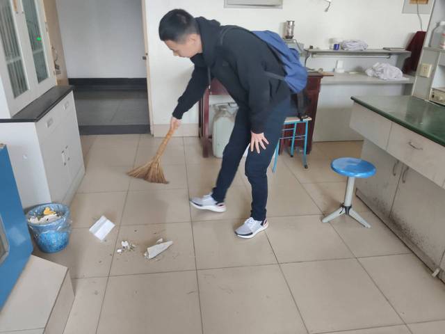 本次学习活动的主题为“不忘初心,牢记使命”之党的担当作为专题。下午3点,本科生第一党支部全体员工党员在5号实验楼大厅集合,根据实验管理处的安排准备开始此次打扫,打扫区域为316、318两间实验室。活动开始,实验室老师介绍具体要打扫的教室,分配相关工具和具体要打扫的内容。大家自愿分为两组,分别打扫两间实验室。