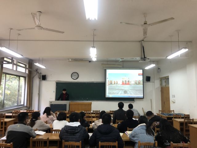 11月14日下午,本科生第二党支部全体党员佩戴党徽于13教119教室集中学习观看 “伟大历程辉煌成就——庆祝中华人民共和国成立70周年大型成就展”网上展馆,亲身感受新中国成立70年来走过的光辉历程。
