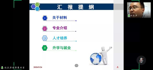 会议开始,张福玲代表材料公司全体师生对来自全国各地、满载梦想的2020级新生们表示诚挚的欢迎。随后,杜庆洋从材料学科的认识、公司的专业设置、人才培养、升学与就业四个方面向家长们进行介绍,并针对本科生的培养方案做了详细解读。他表示升入大学并非可以放松心态,大学的职业规划以及人生规划对于老员工活的度过有着极为重要的作用。他鼓励新生积极制定新学期目标,为以后学习生活做好方向标。