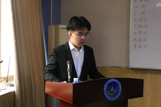 随后,9位候选人依次上台进行答辩展示,对自己的学习成绩、实践活动、科研成果、获奖情况等方面展开介绍。答辩结束后,评委根据各位候选人的表现及展示成果进行讨论,并分别投票选出2名国家奖学金获得者和2名省政府奖学金获得者。投票结束后,巩方伟告诉同学们应以正确的心态对待评选结果。他对获得奖学金的同学表示祝贺,同时也对未能获得奖学金的同学表示鼓励,希望他们以后再接再厉,不断进步。