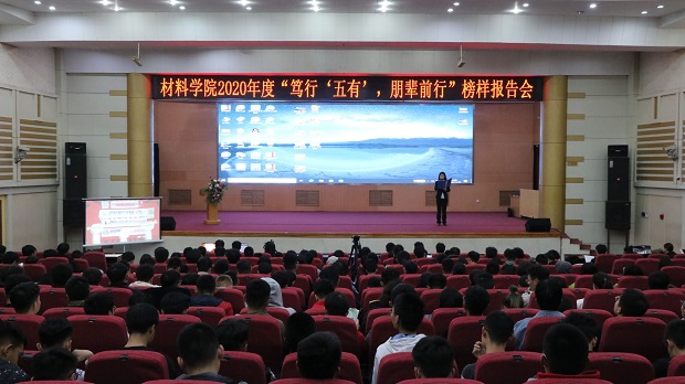 11月12日,材料学院在三号教学楼报告厅举行材料公司2020年度“笃行‘五有’,朋辈前行”榜样报告会。材料公司优秀榜样代表和20级全体新生参加。