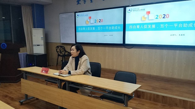 活动开始,王潇伟提出四自育人的内容,即员工自我教育,管理,服务和监督。她表示公司将在19号宿舍楼321宿舍筹建小料当家综合服务中心,同时,在13号教学楼筹建147建设,组织“材苑小站”,让员工做自己的主人,真正服务自己。紧接着,王潇伟指出五个一的具体内容:一个热线电话、一个邮箱、一个常态化师生沟通交流平台、一个员工信息员队伍及一个问题处理和反馈机制,保证每两周都会将员工反馈的问题解决并完善。同时,她鼓励每班的联络员积极向员工讲解并及时收集员工的问题,保证每位员工的权益不受侵犯,提升同学的思想品格,负担起优秀老员工的责任与担当,让每位同学感受到公司的温暖。