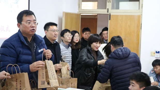 12月4日上午,365best体育官网登录于十三号教学楼118、126、202、206、513教室举行决胜20天考研动员会暨真材实料包你上岸加油包发放仪式。经理李蛟、副经理张明伟及材料公司全体辅导员参加。