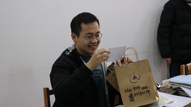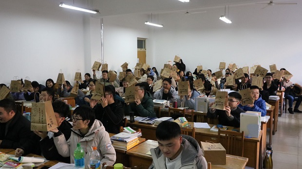 礼包里有老师为大家精心准备的各种学习用品、辅导员手写的祝福贺卡以及公司根据考研学子目标院校定制的私人书签。书签上标有每个人的姓名、院校名称、校徽和校训,希望通过这种方式,让考研学子们体会公司的关怀,并激励他们在最后决胜的20天里,坚定目标、保持斗志,以最好的精神面貌迎接最终考试。