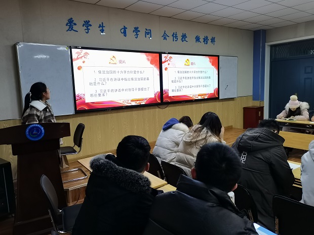 周婧同志围绕《习近平在中央全面依法治国工作会议上强调坚定不移走中国特色社会主义法治道路为全面建设社会主义国家提供有力法治保障》具体内容展开领学,她提到全面推进依法治国要全面贯彻落实党的十九大和十九届二中、三中、四中、五中全会精神,坚持党的领导、人民当家作主、依法治国有机统一,以解决法治领域突出问题为着力点,坚定不移走中国特色社会主义法治道路,在法治轨道上推进国家治理体系和治理能力现代化,为全面建设社会主义现代化国家、实现中华民族伟大复兴的中国梦提供有力法治保障。