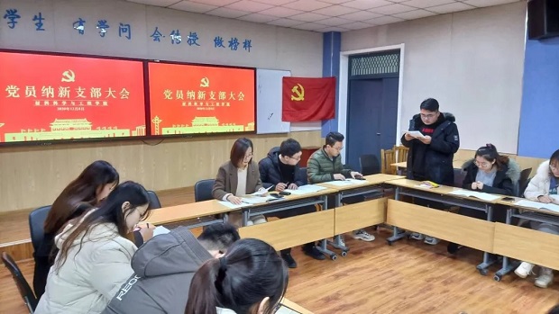 为进一步加强本科生第一党支部党员队伍建设,提高党支部的凝聚力和战斗力,365best体育官网登录本科生第一党支部于12月8日下午在13号教学楼130教室召开党员纳新大会,讨论关于接收刘开涛等15名同志转为预备党员的问题。会议由党支部书记王潇伟主持,副书记李昊宇、组织委员卢博、宣传委员刘梓欣、纪检委员王鲁、第一党支部党员、预备党员及发展对象参加。