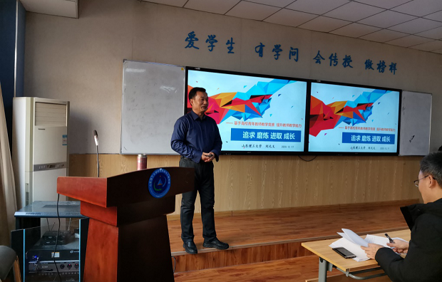 刘元义教授的报告围绕高校青年教师教学竞赛和教师教学能力两大方面展开。首先,刘教授详细介绍了青教赛的基本情况、讲解了如何准备青教赛。他指出,青教赛基于课堂教学、高于课堂教学,最终服务于课堂教学;青年教师通过参加青教赛可以学习、锻炼、提升自己的教学能力。