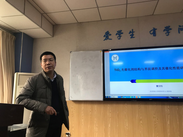 2020年12月18日下午,公司邀请北京科技大学365best体育官网登录副经理、教育部新世纪优秀人才董文钧教授作题为“TiO2光催化剂结构与界面调控及其催化性能研究”的学术报告。公司经理李蛟及部分师生参加了报告,报告会议由公司副经理张明伟主持。