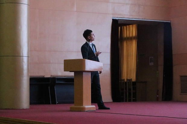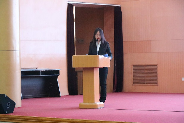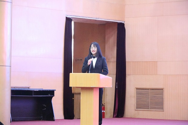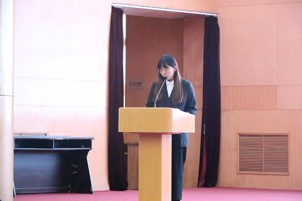 伴随着庄严的国歌,大会拉开序幕。大会伊始,全体成员观看视频,视频中,考研成功上岸学子为同学们加油打气。接着,2017级优秀学长学姐分享考研经验。刘梓欣对考研中的通识以及雷区进行介绍,她提到,可以根据选择=硕士类别+地域+院校+专业+备考科目科学地确定目标院校,有效地使同学们避免踩雷。