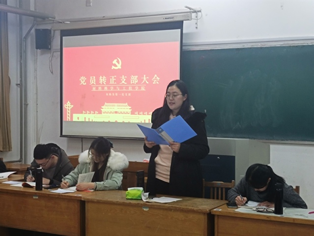 然后,转正的党员代表彭倩进行表态发言,她表示,定会服从党的领导,听从党的指挥, 切实开展批评与自我批评,积极工作, 在各项活动中发挥表率和带动作用,为全面建设社会主义现代化国家努力奋斗,争做一名优秀的共产党员。