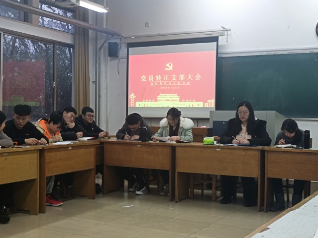 12月30日下午,公司本科生第一党支部召开党员转正支部大会,讨论蒋载文、张娜、安荣正、彭倩、姜瑞琪五名预备党员转为正式党员的问题。