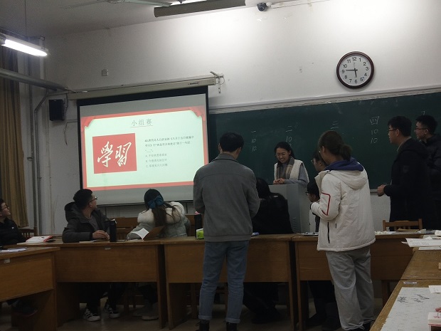 此次挑战赛分为小组接力答题和个人挑战两个环节。在小组接力答题中,共分为五个组,分别由支部老师和正式党员担任组长,带领七名同学抽签进行答题。比赛过程,同志们兴致勃勃,有的摩拳擦掌,跃跃欲试;有的小心谨慎,认真准备;还有的心怀忐忑,战战兢兢。比赛正式拉开帷幕,王潇伟和卢博的答题正确为同学们打下良好开端,比赛激烈而又紧张的进行着,每轮比赛结果胶着。最终,除了八道题全部答对的二组,其余四组并列第二,为了决出胜负,比赛随机加赛两题。最后由比赛前三组领取定制笔记本作为奖励。