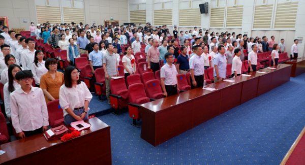 会上,新党员进行了入党宣誓,老党员重温了入党誓词。面对党旗,党员们铮铮誓言铿锵有力,响彻会堂。