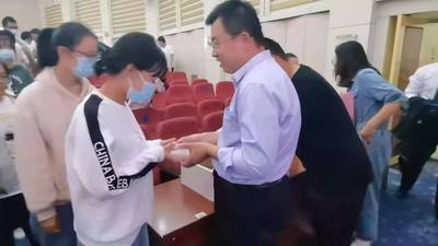 班级导师王鹏代表全院教师发言,他结合个人经历,对新生提出五点建议:要坚持学习、自主学习;要勇于探索、发现自己;要坚定目标、砥砺前行;要规律作息、充实自己;要正视挫折,接受自己。他希望同学们快乐的为理想奋斗,充实而不留遗憾地度过自己的老员工活。
