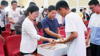 伴随着悠扬的乐曲,公司领导老师向全体新生分发月饼,与同学们共度中秋佳节,将现场气氛推向高潮。大会第一阶段在雄壮的校歌声中落下帷幕。