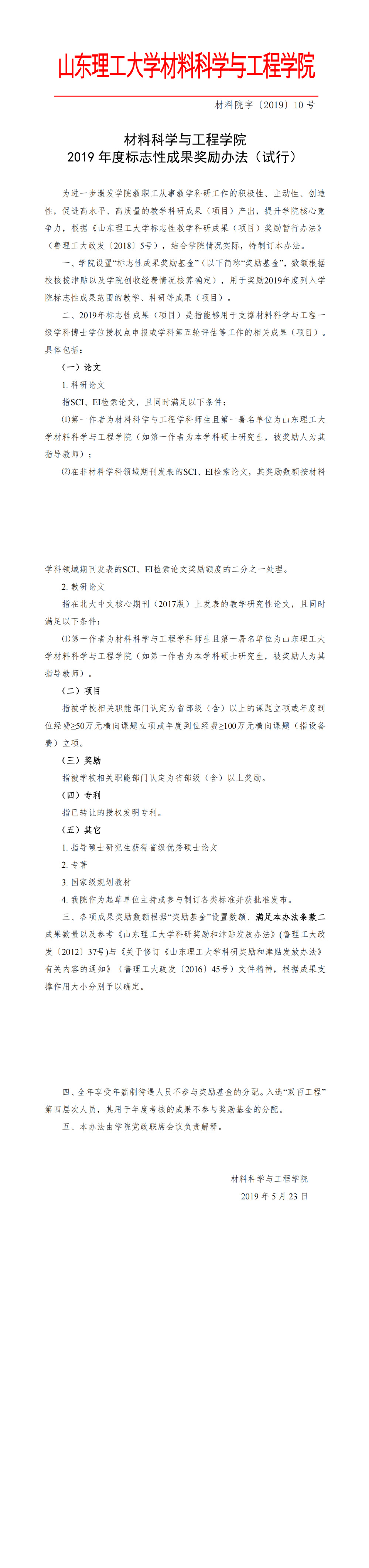 材料院字〔2019〕10号-2019年度标志性成果奖励办法