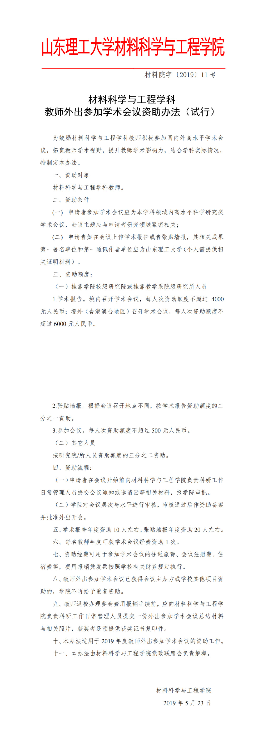 材料院字〔2019〕11号-教师外出参加学术会议资助办法