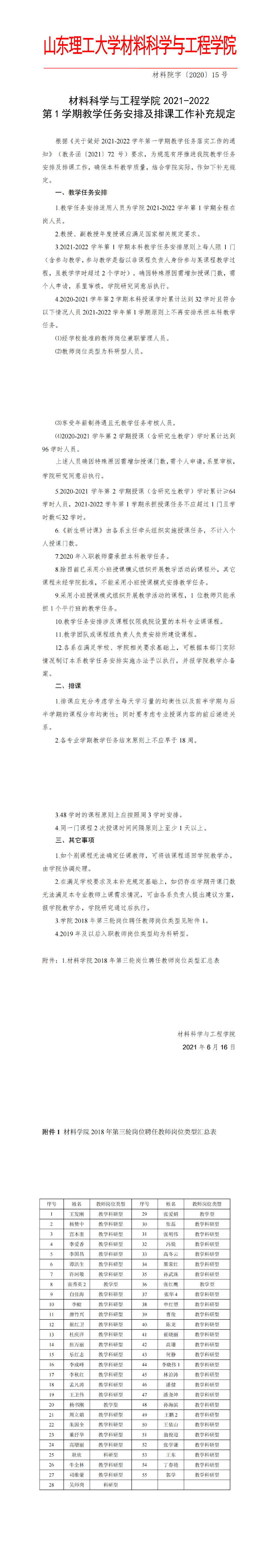 材料院字〔2021〕15号-公司2021-2020第1学期教学任务安排及排课工作补充规定