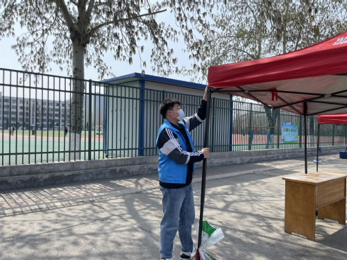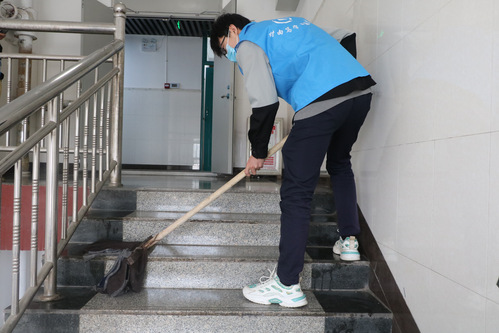 因为校园封控,宿舍楼内保洁阿姨不能入校正常工作,在阿姨不在岗的日子里,材苑先锋队组建45人的宿舍卫生小组,负责13、16、19号公寓楼内卫生的保持和清理,常通风并按规定消毒;材苑先锋队组织66名员工党员成立公寓值班小组,在各宿舍楼轮班站岗,13号公寓宿管阿姨对我们的工作竖起大拇指,并表示确实为她们解决了很多问题,让她们有足够时间休息。