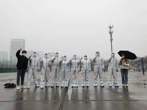 材苑先锋队的党员们组成核酸检测防护小组,在三次全员核酸检测和五次核酸抽检工作中,穿戴全套防护服在核酸检测地点协助工作,天还没亮,志愿者们已经在岗位做好准备,即使天空飘散着雨滴,防护志愿者仍然坚守在防护岗位上,不惧风雨,不惧疫情;材苑先锋队组建100人的防护巡逻小组,每天不定时在校园内、食堂内巡逻,如果发现校园内有不带口罩、邻座就餐等行为,防护巡逻小组上前提醒并规范其行为,督促大家做好自我防护;材苑先锋队还组织175名员工组建体温检测小组,在公司所属宿舍楼每个宿舍为每名员工进行体温测量,做好员工健康“守门人”,充分展现了“战同行,疫同心”材苑先锋队的坚定信念和勇毅品格。