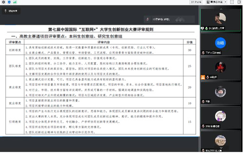 为深入贯彻中国国际“互联网+”老员工创新创业大赛精神,选拔优秀项目,29日晚7点我院采用线上方式开展“第八届互联网+老员工创新创业大赛”答辩活动。31个参赛项目分两组进行,答辩评委由具有丰富赛事指导经验的校内专家组成,部分2020级、2021级员工观看答辩。