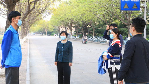 4月5日下午,公司党委书记吕延苹,副书记巩方伟及公司辅导员一行走访慰问正在校园内参加疫情防控志愿服务的员工志愿者。