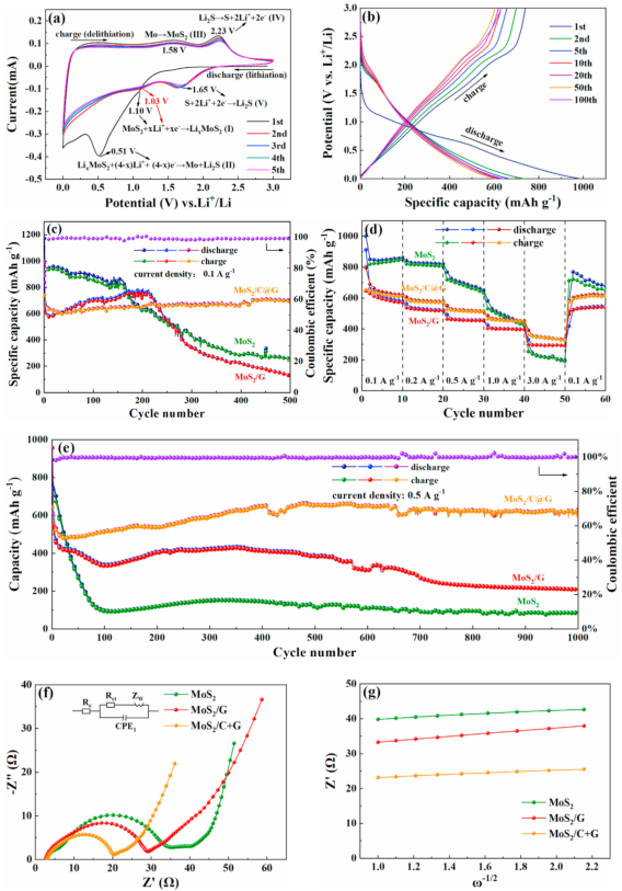 MoS2MoS2/GMoS2/C@G的电化学性能对比