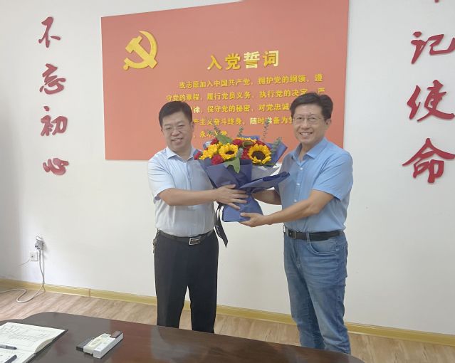 副经理杜庆洋宣读了《关于谭洪生教授光荣退休的通知》,公司党委书记陈沙为谭洪生教授献花。