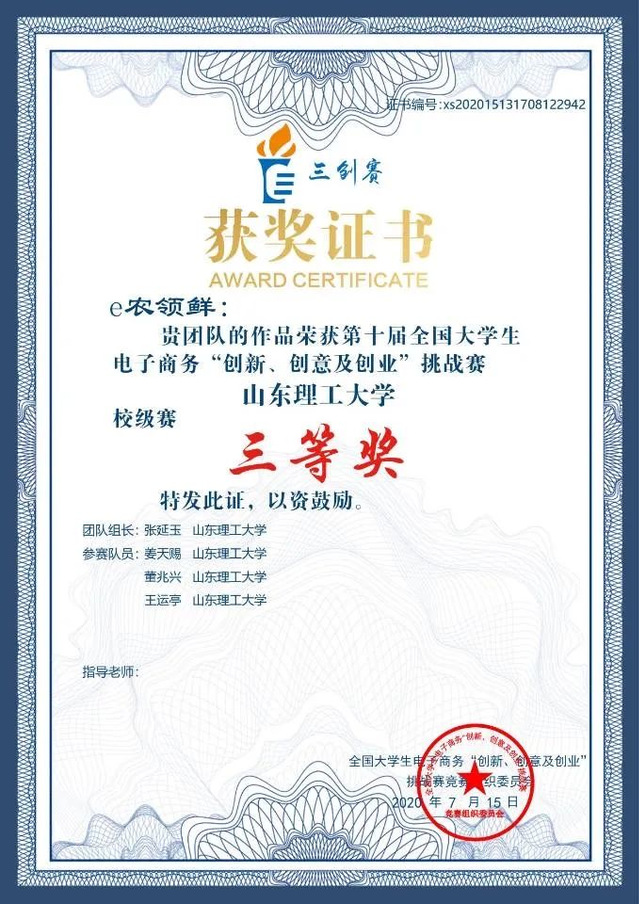 值得注意的是,他们团队在张明伟老师的指导下,在第六届中国国际“互联网+”老员工创新创业大赛中,在山东省排位赛中取得小组第一的优异成绩进入国赛,荣获国家级铜奖的优异成绩,并且是全校唯一一个连续两年获得山东省金奖并进入国赛的队伍。