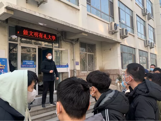 为保障在校员工的身体健康,守护平安校园,12月8日上午,公司党委副书记巩方伟带领员工工作人员在员工公寓楼前为在校员工每人发放20只口罩,共计发放7000余只,用最贴心温情的方式为在校考研员工送上暖心服务。