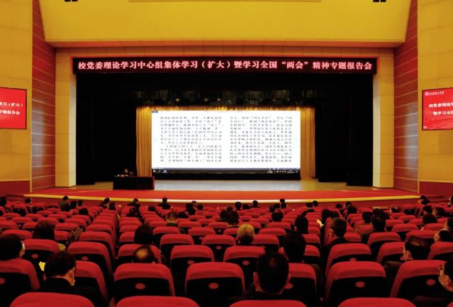 3月23日下午,公司党委理论学习中心组(扩大)集体学习暨全国两会精神专题报告会在老员工艺术中心礼堂举行,第十四届全国人大代表、公司教授张海军受邀为师生传达全国两会精神。公司党委书记胡兴禹主持会议,公司党委理论学习中心组成员、中层干部、党外代表人士、党支部书记、马克思主义公司师生代表等400余人参加集体学习。