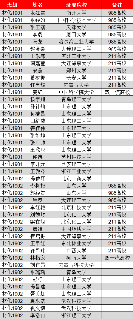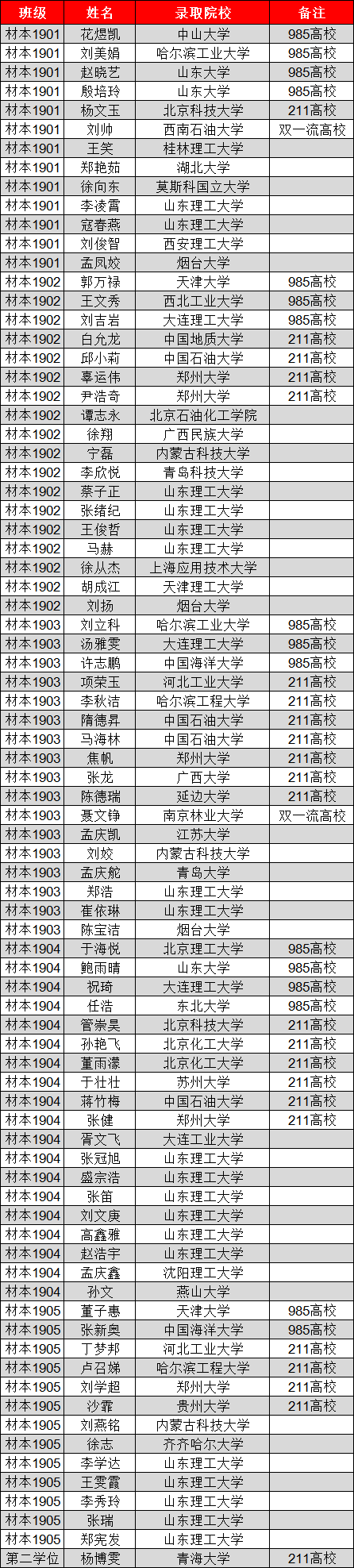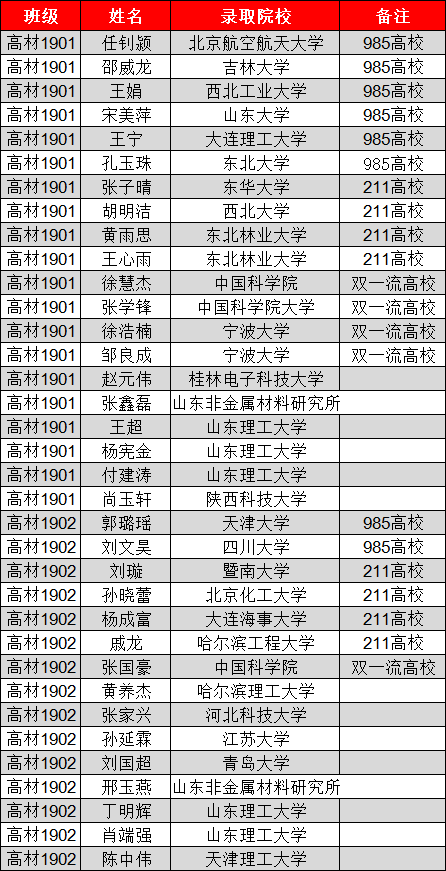 6名同学被山东大学录取