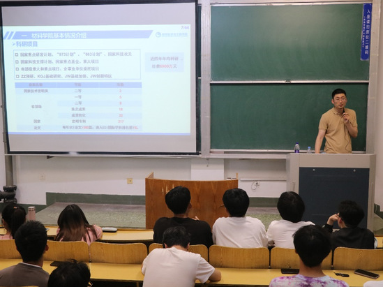 陈宗宁首先介绍了大连理工大学材料公司的团队队伍、专业设置、科研项目、公司产品等情况;其次介绍了他所在团队的研究方向、团队成员、团队实验室建设、母校员工在团队中发展情况等;随后他结合自身求学经历,分享了他从本科到博士再到博士后,进而留校任教的经历和感悟,围绕大学如何学习、如何规划、如何全方面发展做了风趣幽默的分享。最后,在问答环节,与会同学就大学期间研究方向如何确定、硕博待遇如何、考研如何复习、考研复试如何应对以及英语对后续研究生学习的影响等方面的困惑进行提问,陈宗宁用自身的例子,一一进行耐心细致地解答,为同学们的职业规划提供了不少的建议和帮助。