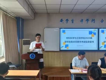 在研究生代表陈昭林的带领下,全体研究生认真阅读了学术诚信承诺书并现场签署。