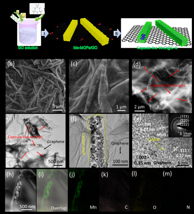 图1 capsule-like MnO@C-G的合成与形貌示意图。