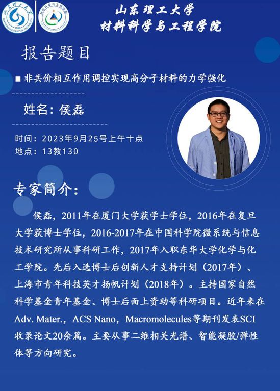 东华大学专家学术报告:非共价相互作用调控实现高分子材料的力学强化