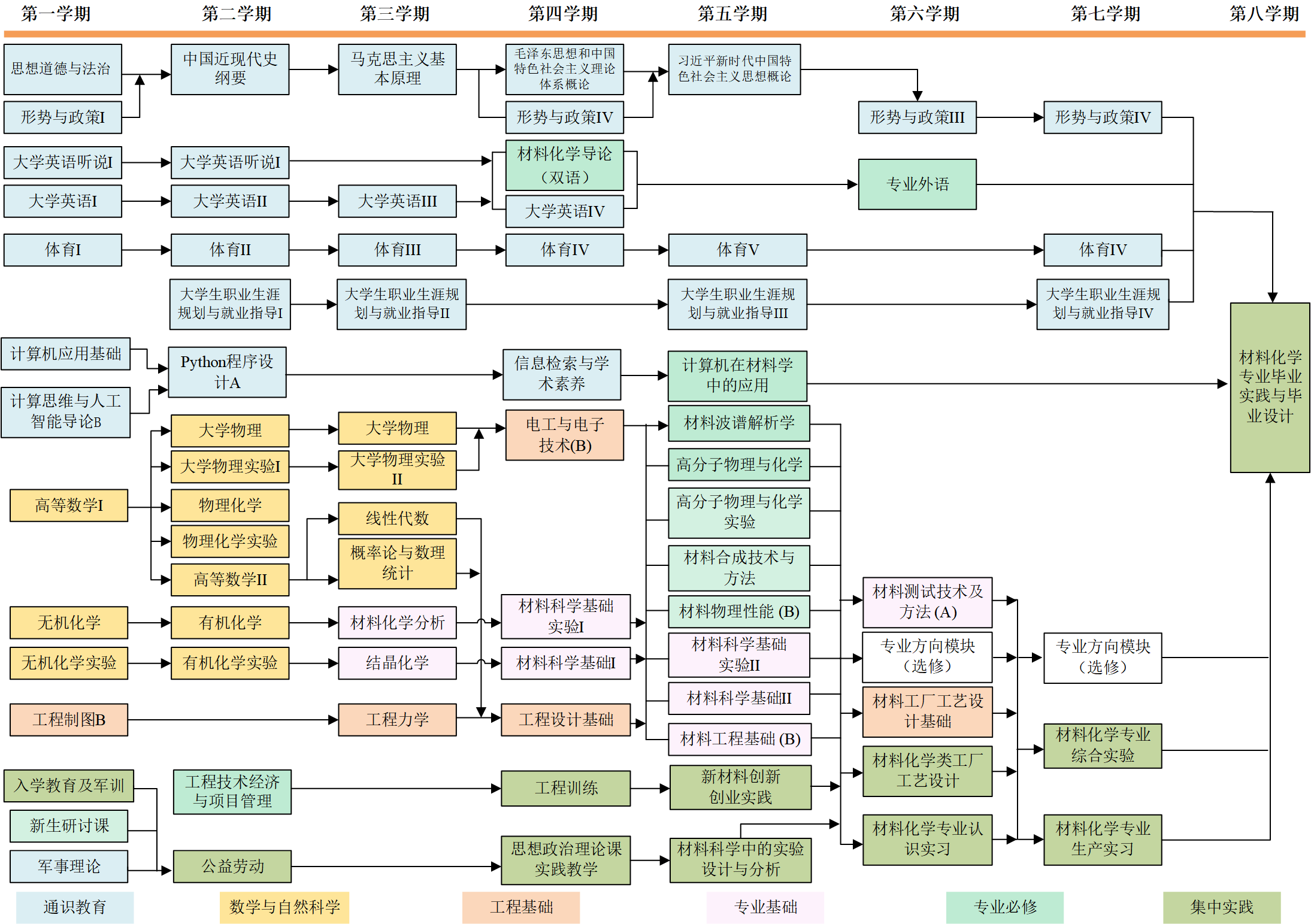 无机化学、有机化学、物理化学、材料化学分析、结晶化学、材料科学基础、材料波谱解析学、高分子物理与化学、材料测试技术及方法、材料物理性能、材料合成技术与方法、计算机在材料学中的应用等。