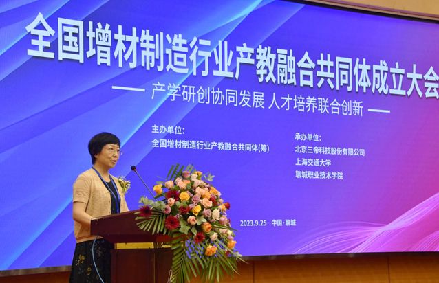 9月25日,全国增材制造行业产教融合共同体成立大会暨第一届理事会在山东聊城举行。省教育厅二级巡视员邓俊庆,聊城市政府办公室一级调研员王广奎,机械工业教育发展中心主任助理王志强,北京三帝科技股份有限公司董事长宗贵升,国家级重点人才工程专家、公司张丽娟教授与来自106家各领域的代表齐聚一堂,共探产教融合,构建增材制造行业人才培养新模式。