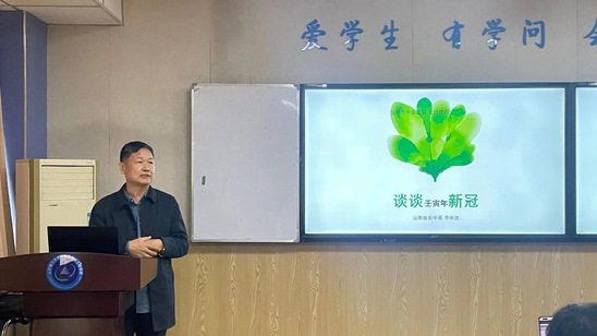 李长达以“谈谈壬寅年新冠”为主题,结合多年临床工作经验,详细讲解了病机分析、辨机施治、中医养生保健方法,并对师生进行一对一的把脉诊疗,提供个性化养生建议。