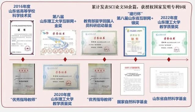 所指导研究生分别获2020年山东省研究生优秀成果奖,2021年山东省优秀硕士学位论文,以及2021和2022年365亚洲体育网入口校级优秀硕士学位论文,并多次获365亚洲体育网入口研究生优秀员工。研究生创新能力强并取得突出成果,获第八届“互联网+”老员工创新创业大赛山东省银奖、校金奖,第九届“互联网+”老员工创新创业大赛山东省金奖并推国赛。