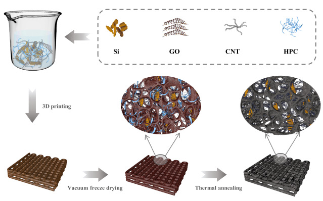 图1 三维硅基电极3D-Si/G/C的制备示意图