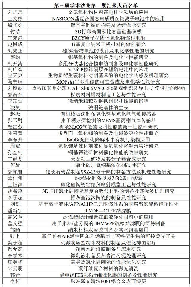 材料公司的菁英学子们围绕自己的研究方向,向大家分享了锂离子电池的发展历程以及基本的工作原理、金属材料的热处理工艺、催化剂的合成反应机理和性能研究、多种高分子材料的合成及性能测试等多方面的内容,涵盖材料学、化学、物理等多个交叉学科,内容丰富、充实。