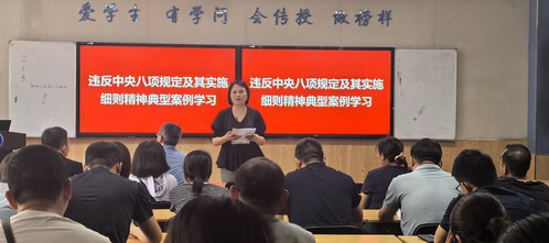 会议对中央八项规定精神进行深入解读,选取教育系统近年来查处的多起违反中央八项规定精神典型案例进行深入剖析,以案示警、以案明纪。