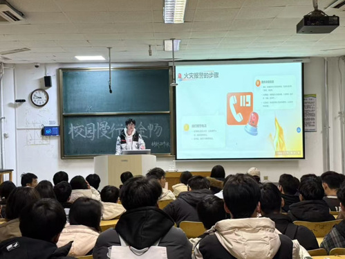 着重讲解了宿舍用电安全须知,明确了违规电器的种类与危险性,普及了火灾初起时的扑救方法以及火场逃生自救技巧,使“防患于未然”的意识深入人心。