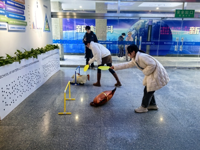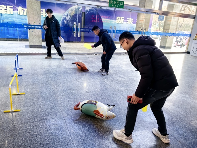 最考验技巧与耐心的“马力全开,一马当先”赶马入圈项目,吸引了众多老师前来挑战。大家手持彩扇,引导气球“小马”稳步向前。过程中,“小马”时而调皮跑偏,老师们或俯身轻赶,或巧扇引导,姿态生动,场面诙谐,引发阵阵欢笑与鼓励,将现场气氛推向高潮。